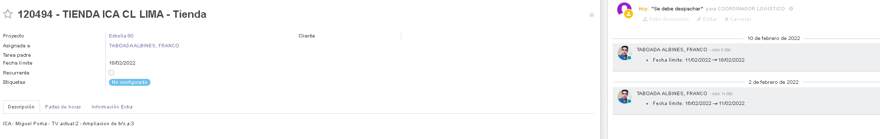 https://masterfix.tiam-v.com/web#id=4943&action=557&active_id=5&model=project.task&view_type=form&cids=1&menu_id=403 @COORDINADOR LOGISTICO este kit de ddvv se debe despachar el dia de hoy para ica